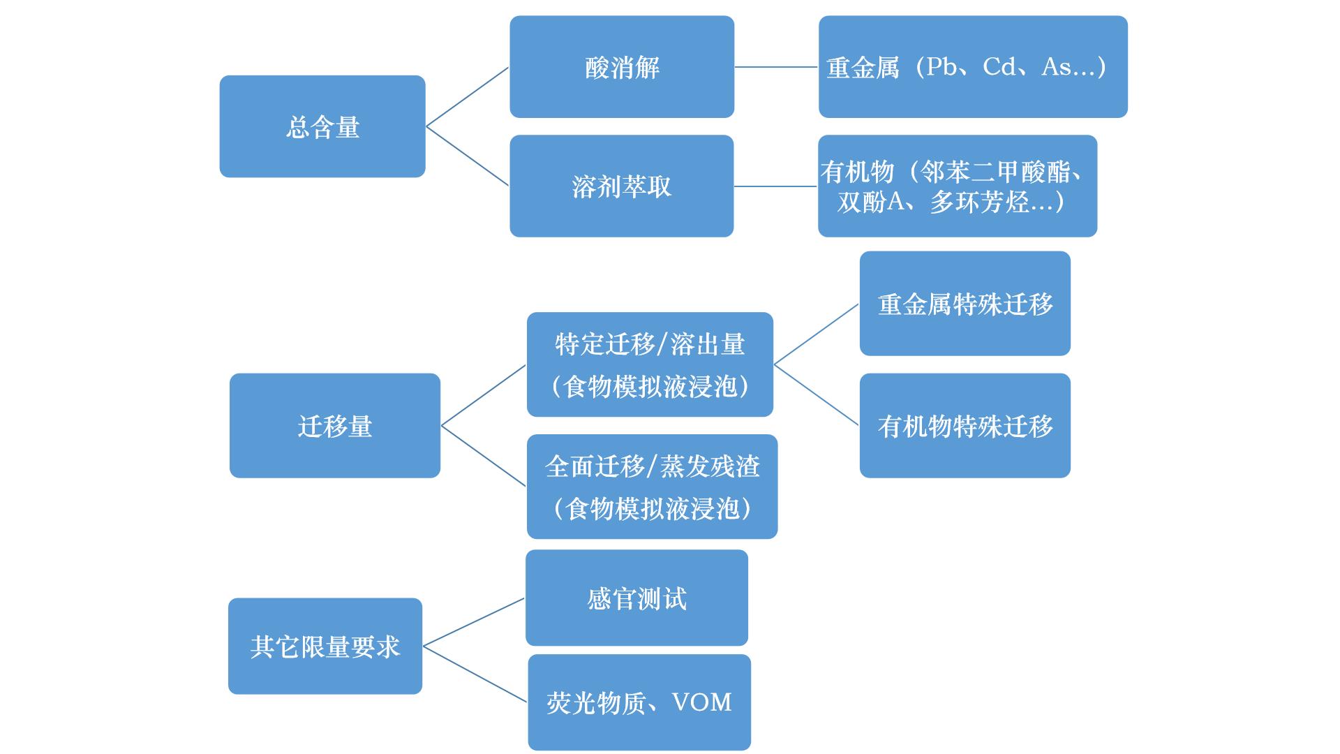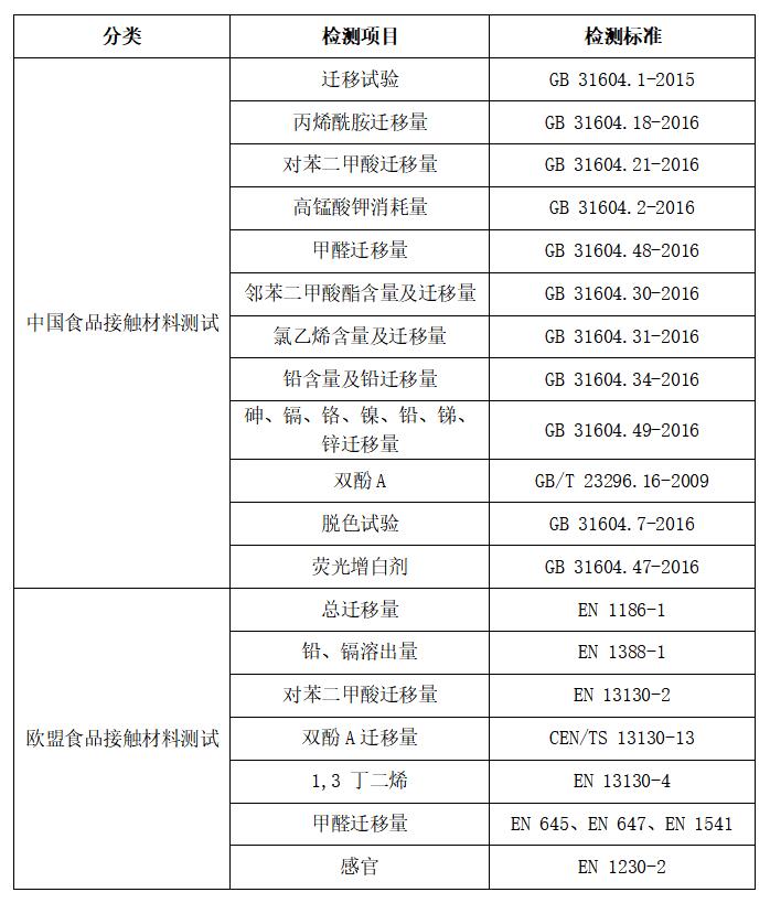 按照食品接觸材料衛(wèi)生標(biāo)準(zhǔn)的規(guī)定,檢測項(xiàng)目和檢測方式通常包括以下幾類: